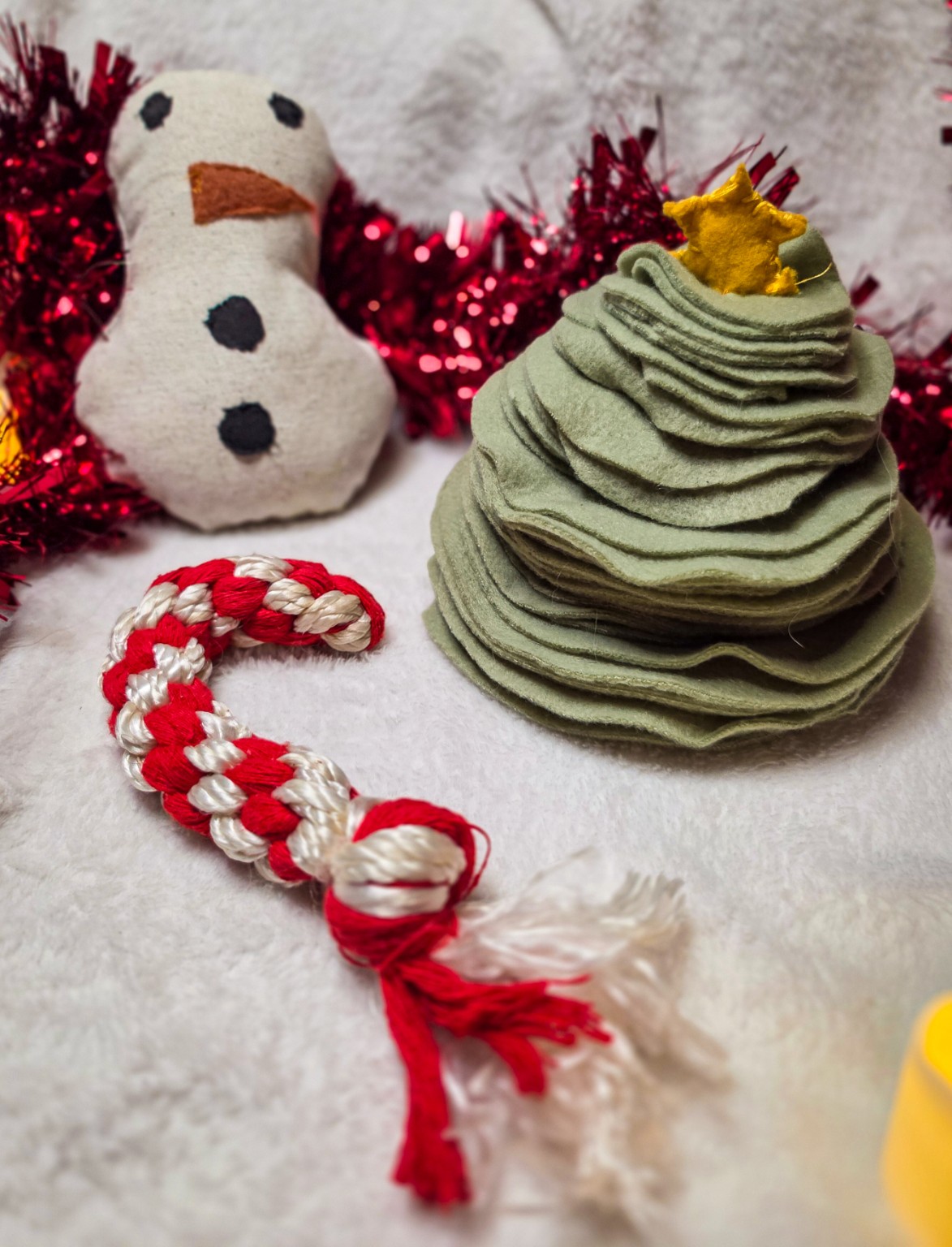 ✔ Jouet Bonhomme de neige (tissu upcyclé + pouic)